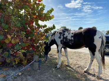 Storm is one of our lead guides personal horse who is apart of our family! He is a paint/draft cross with a lot of personality!